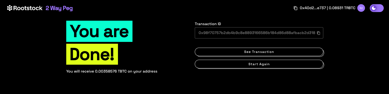 To perform a peg-out, open the PowPeg App - Testnet in your browser.